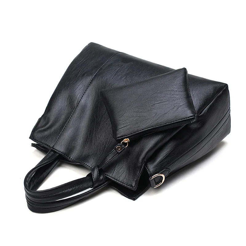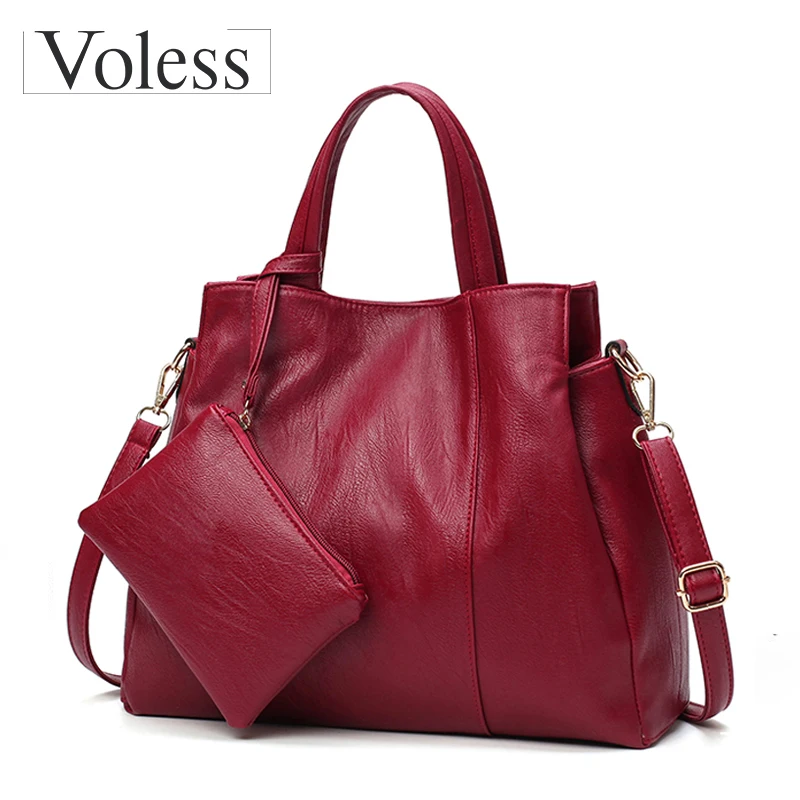Goede Kopen Luxe Handtassen Vrouwen Tassen Designer Hoge Kwaliteit PU Lederen Handtassen Solid Tote Bag Voor Vrouwen 2 sets Schoudertas 2018 nieuwe Goedkoop