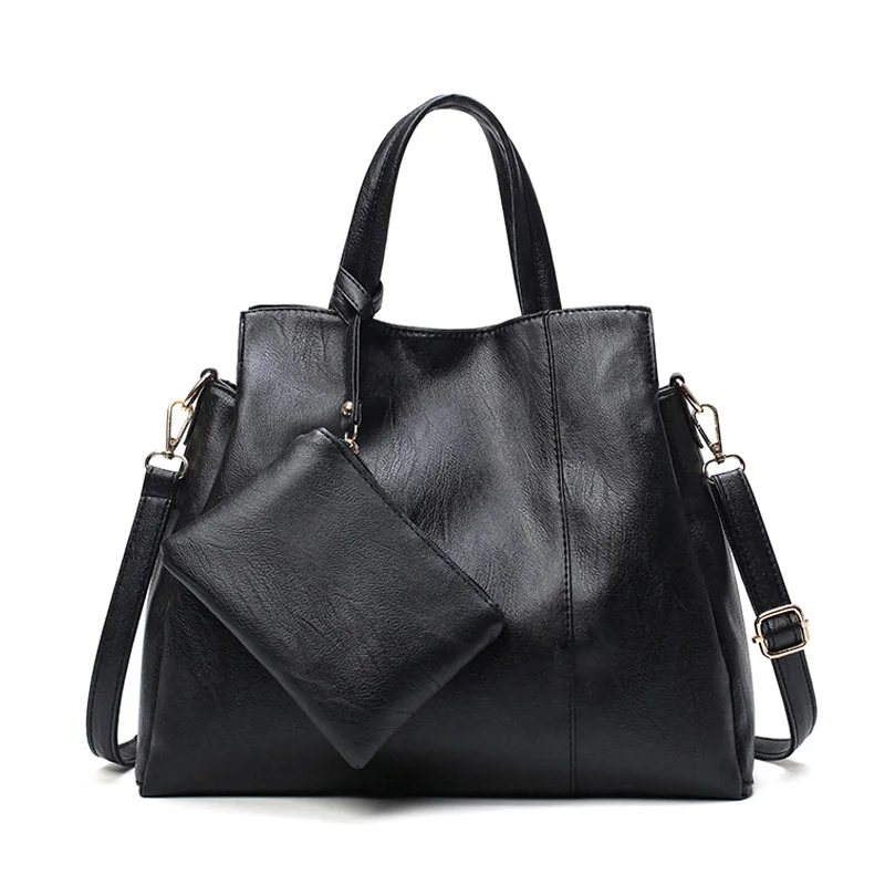 Goede Kopen Luxe Handtassen Vrouwen Tassen Designer Hoge Kwaliteit PU Lederen Handtassen Solid Tote Bag Voor Vrouwen 2 sets Schoudertas 2018 nieuwe Goedkoop.