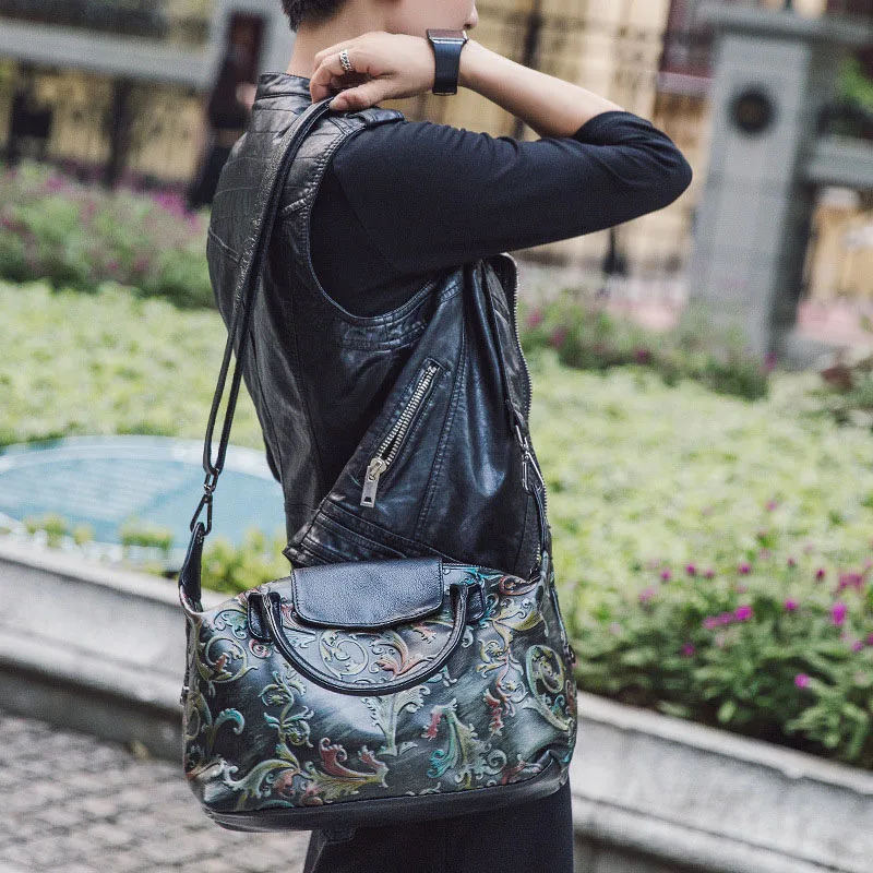 Goede Kopen AETOO De nieuwe koeienhuid printing fashion casual vrouwen tas Phoenix rose patroon lederen handtassen Goedkoop
