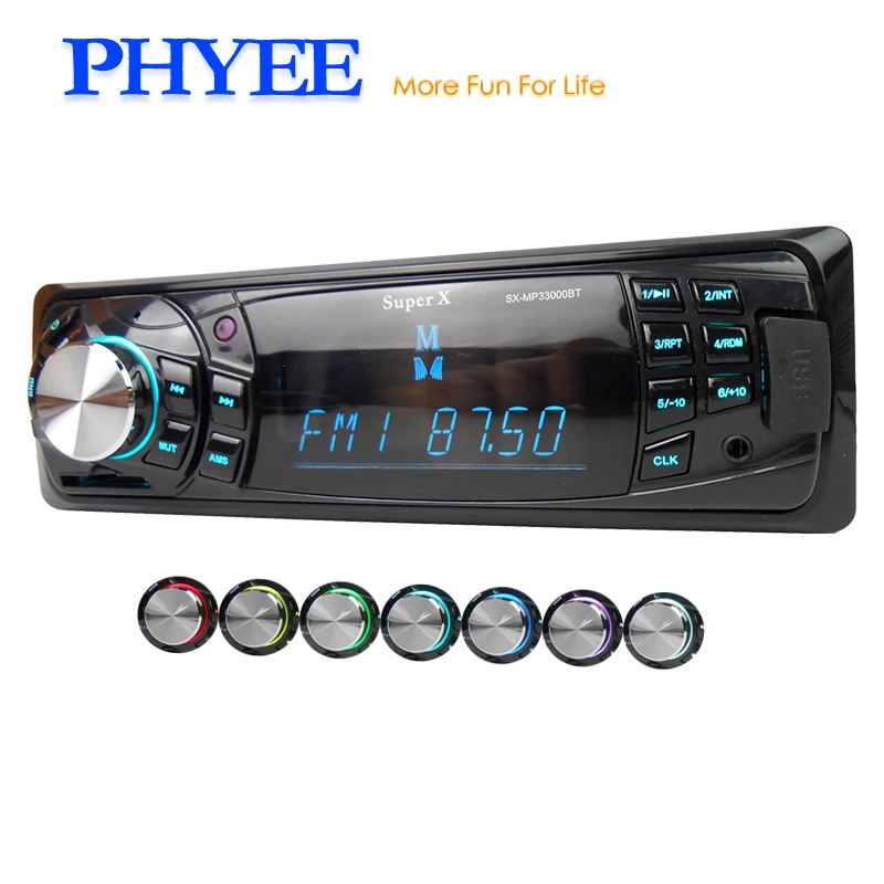 Beste Koop 1 Din Bluetooth Car Audio Radio Stereo Autoradio USB MP3 Speler FM Ontvanger A2DP Handsfree 7 Kleuren Verlichting Unit SX MP33000BY Goedkoop.