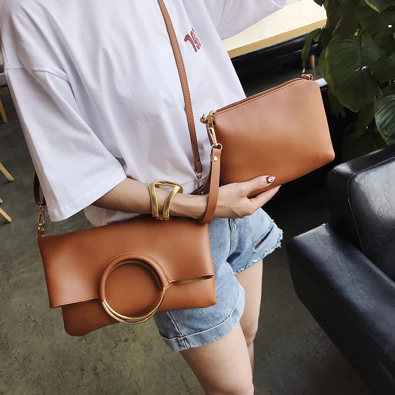 Kopen Goedkoop Vintage Ring Vrouwen Hangbags vrouwen Schoudertassen vouw Dames Koppelingen Crossbody Tassen voor vrouwelijke polsbandje bakken purse 2 stks set Online.