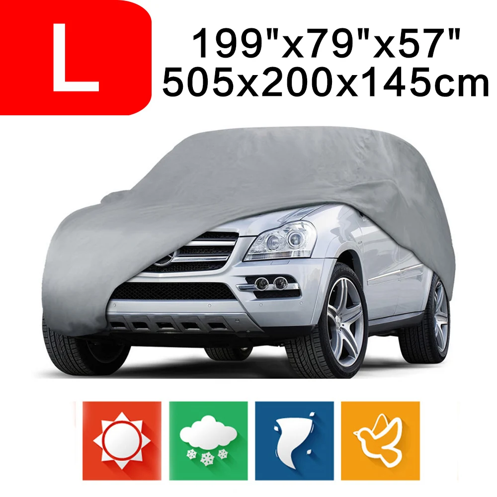 Beste Koop Waterdicht 190 t Dacron L Size Full Car Cover voor SUV Van Vrachtwagen In Out Deur Stofdicht Zon UV Ray regen Sneeuw Slip Covers Goedkoop.