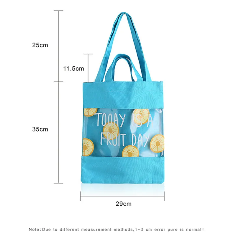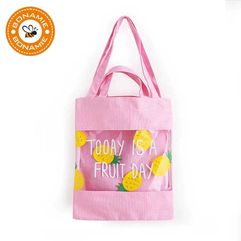 Beste Koop BONAMIE meisje Enkele Strand Schoudertas Fruit Patroon Vrouwelijke Canvas Boodschappentas Transparante Stiksels Vrouwen Handtas Strandtas Goedkoop