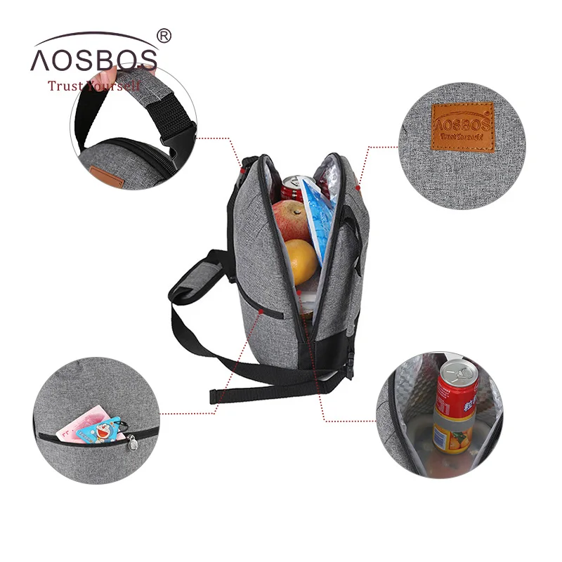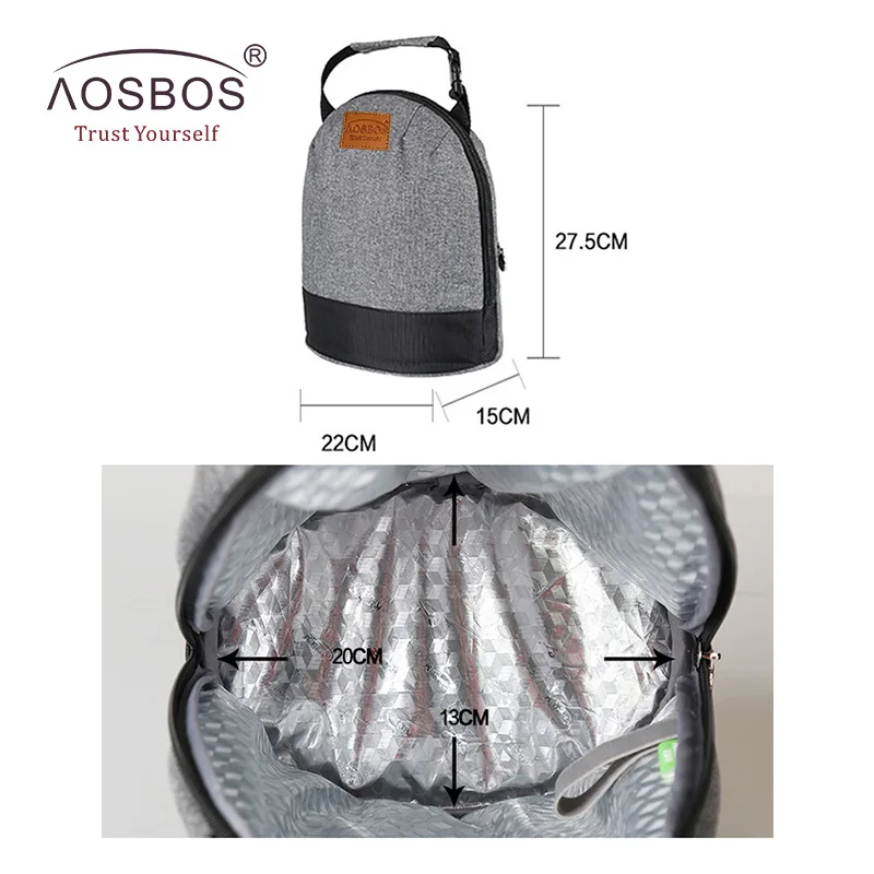 Beste Koop Aosbos Oxford Ge iuml;soleerde Lunch voor Vrouwen Kids Draagbare Grey thermische Lunch Tas Doos Mannen Voedsel Picknick Bento Koeltas Tote Goedkoop