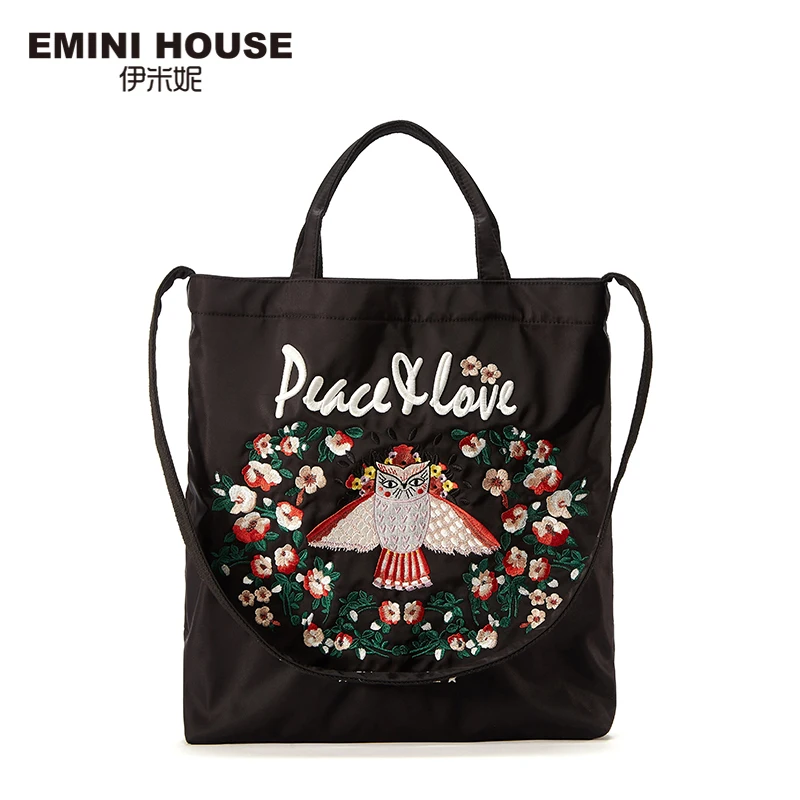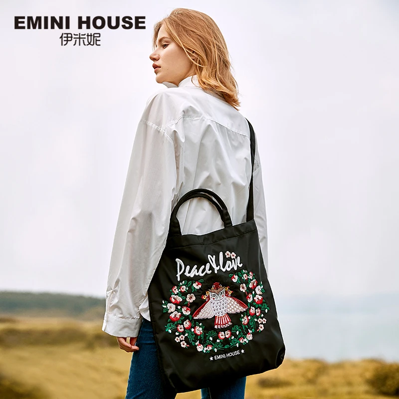 Beste Koop EMINI HUIS Borduren Herbruikbare Boodschappentas Opvouwbare Tote Tas Voor Vrouwen 2018 Handtas Ruim Nylon Waterdichte Tas Fashion design Goedkoop