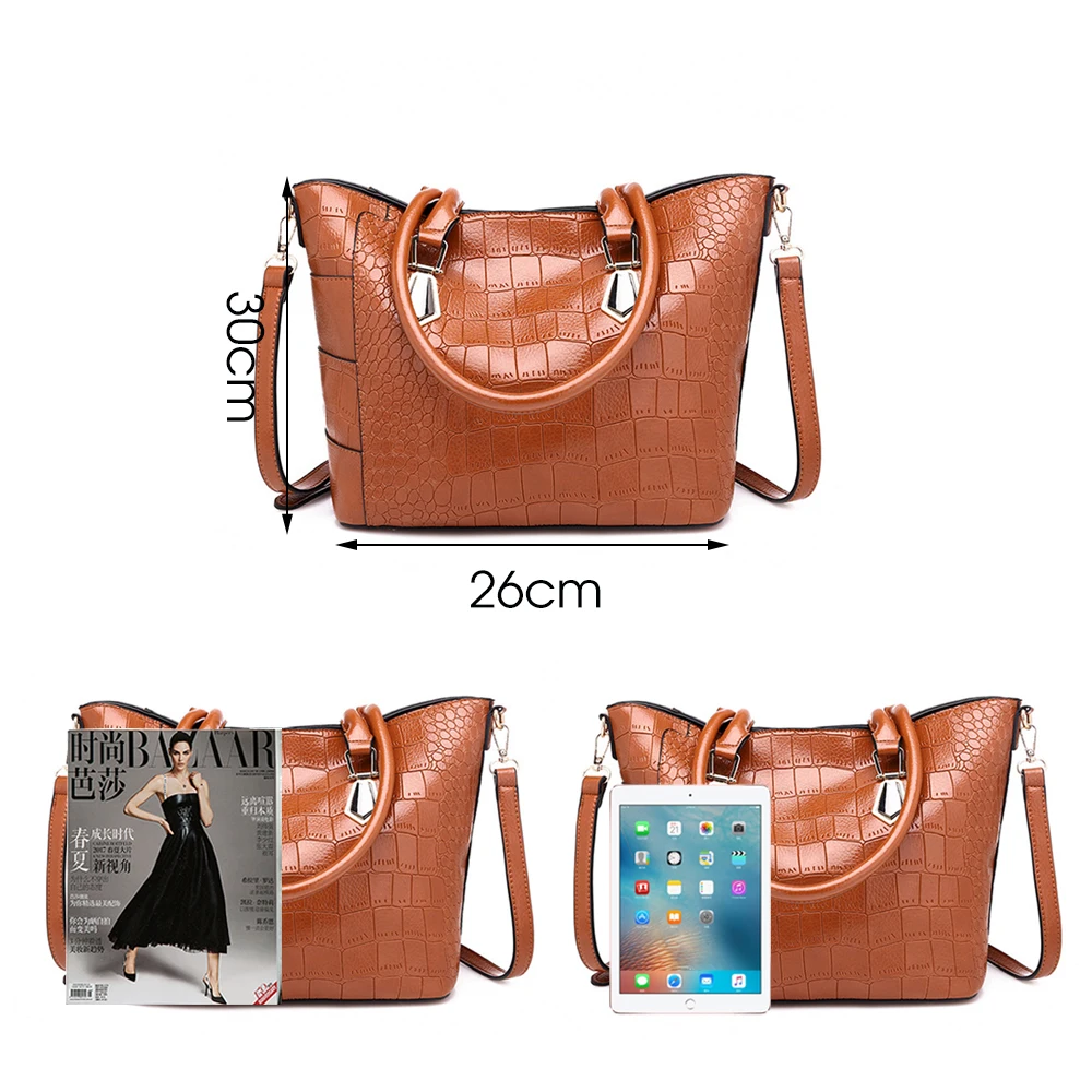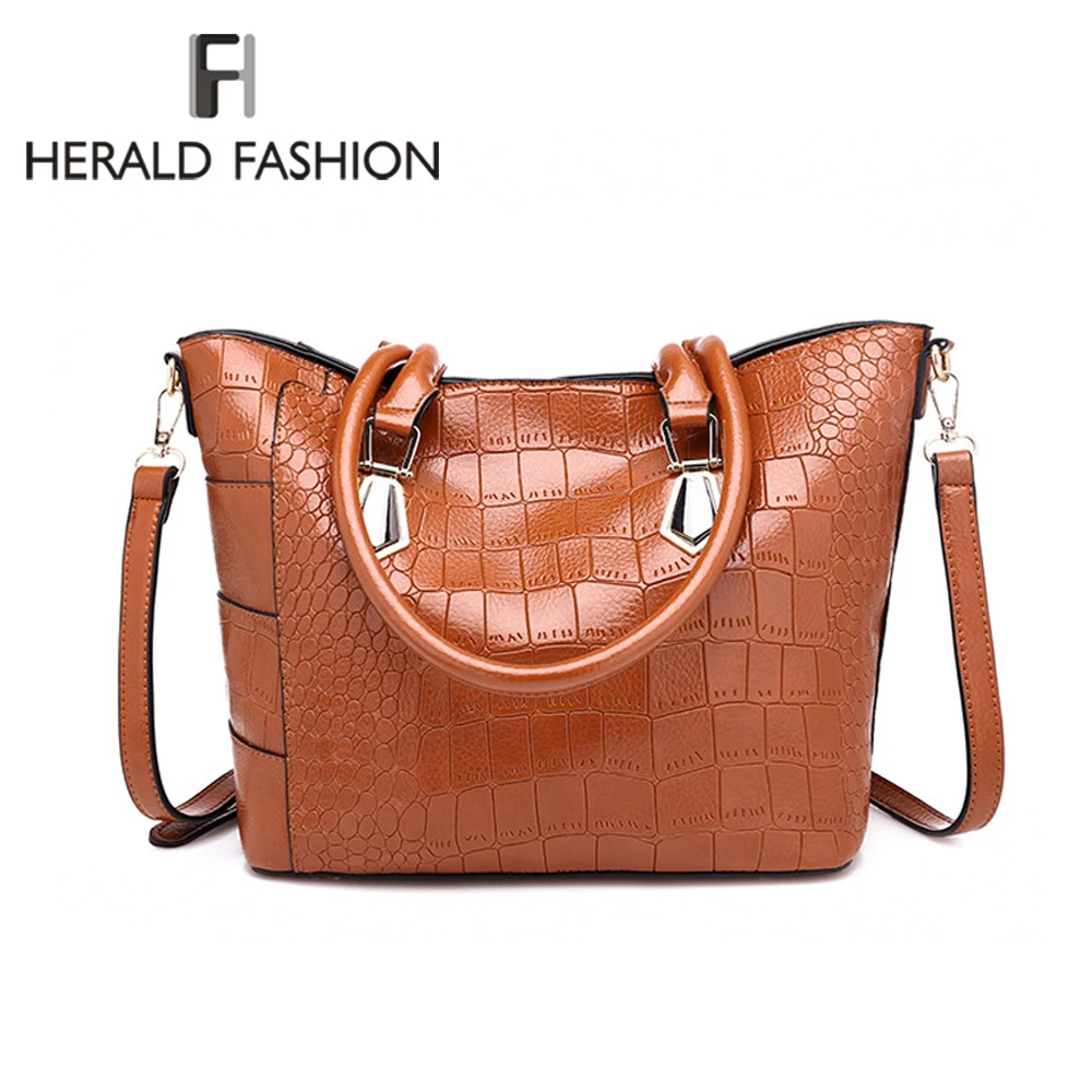 Goede Koop Herald Fashion Casual Glossy Alligator Vrouwen Totes Grote Capaciteit Dames Eenvoudige Winkelen Handtas Kwaliteit PU Lederen Schoudertas Goedkoop