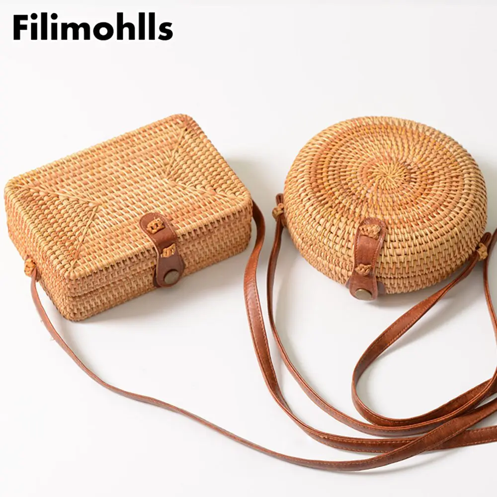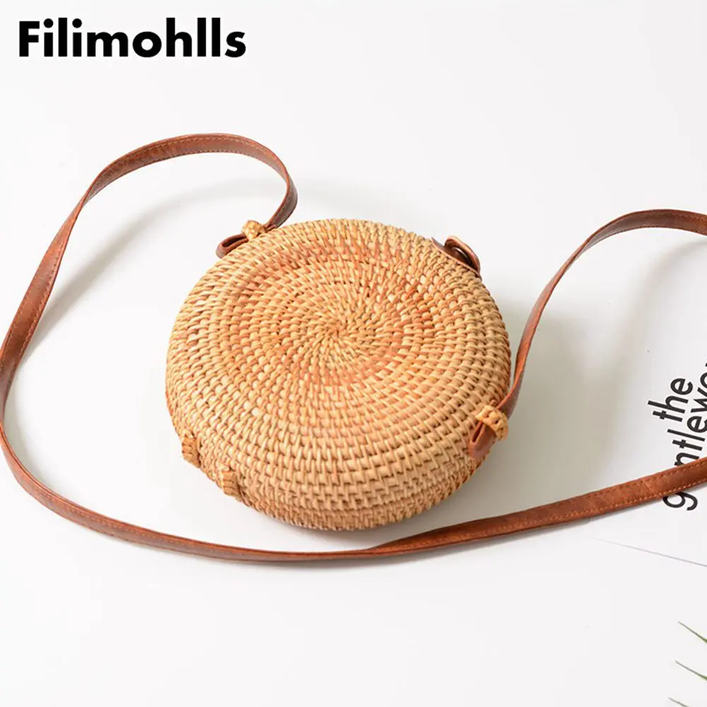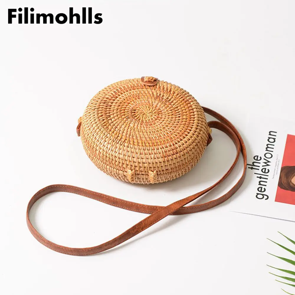 Goede Koop Zomer Vrouwen Handgemaakte Ronde Bamboe Handtassen Rotan Zakken Cirkel Doos Bali Bohemian Beach Totes handtassen Breien Strozak F 248 Goedkoop