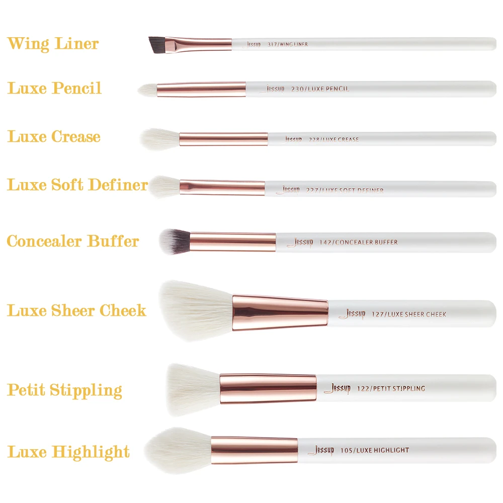 Kopen Goedkoop Jessup Borstels 8 stks Wit Rose Gold Professionele Make Up Kwasten Set Definer Concealer Highlighter Make Up Borstel Gereedschap kit T218 Prijs.