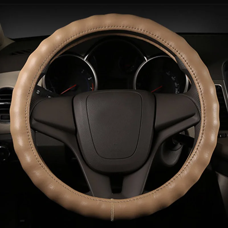 Kopen Goedkoop 36 47cm Genuine Leather Auto Truck Bus Steering Wheel Cover For Daewoo Volvo Man Renault DAF Isuzu Mitsubishi Car Styling Prijs