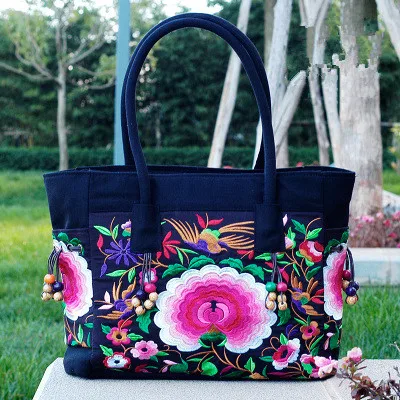 Beste Kopen Hot Fashion Borduren Vrouwen Casual Tote! Mooie Bloemen Geborduurde Dame Canvas Schouder amp; Handtassen Veelzijdige Vintage Crossbody Tassen Goedkoop