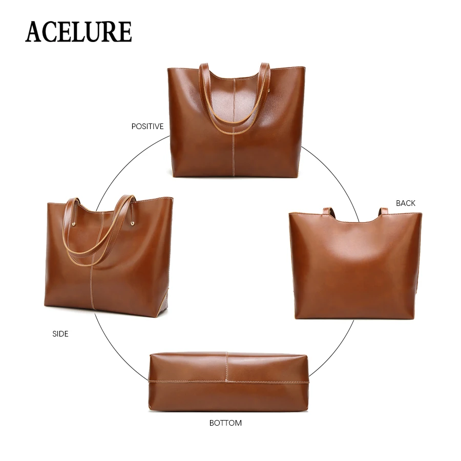 Beste Kopen ACELURE Olie Wax Lederen vrouwen Tote Grote capaciteit Vrouwen schoudertas Klassieke Casual tassen voor vrouwen 2018 bolsa feminina Goedkoop