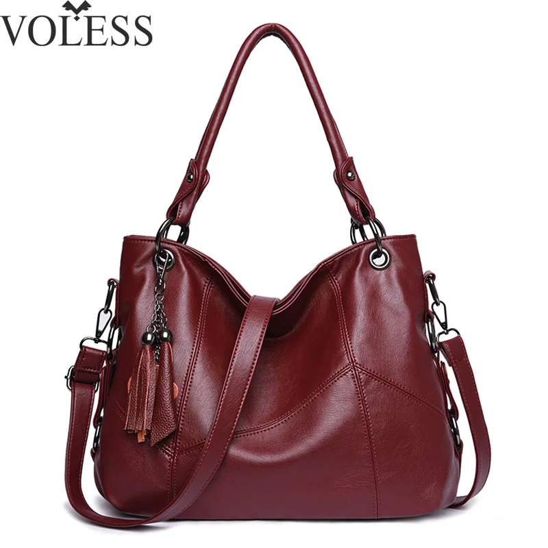 Kopen Goedkoop VOLESS Schapenvacht Handtas Retro Kwastje Lederen Vrouwen Schoudertassen Grote Capaciteit Casual Tote Vrouwen Tassen Sac Een Prijs