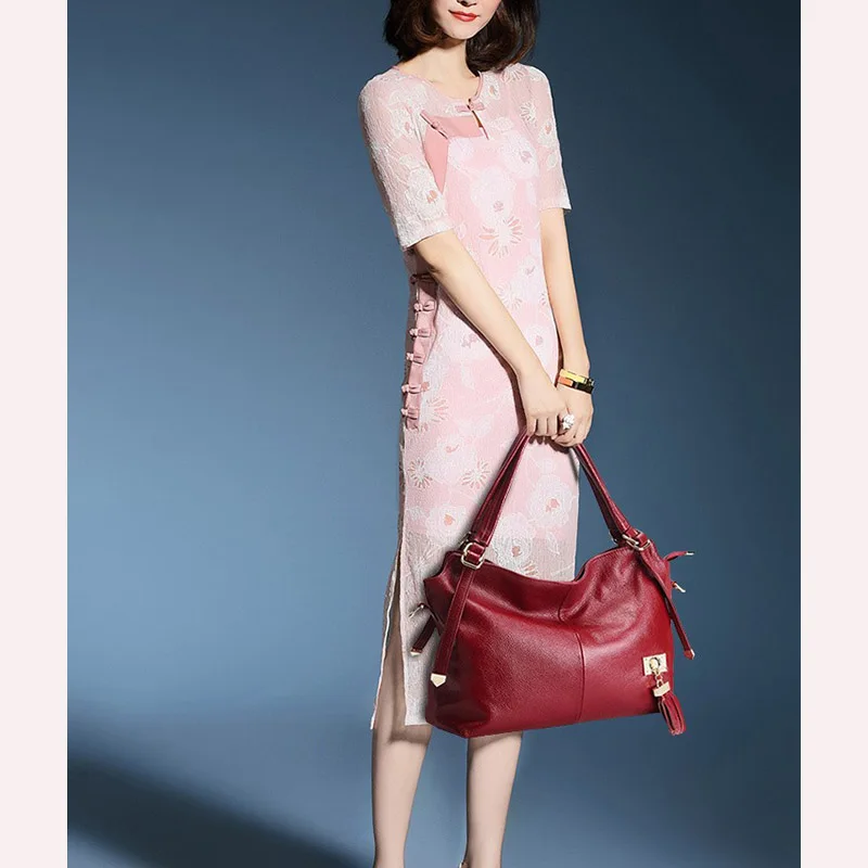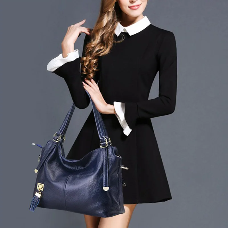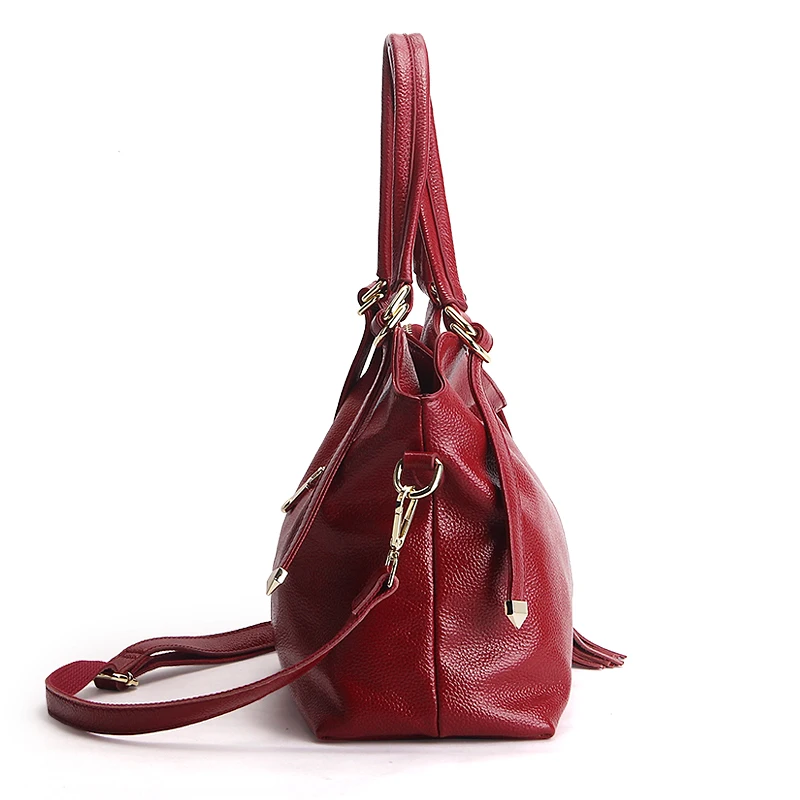 Goede Kopen Zency 100% Zacht Echt Leer Vrouwen Schoudertas Met Kwastje Luxe Bordeaux Handtas Fashion Lady Crossbody Purse Satchel Tote Goedkoop