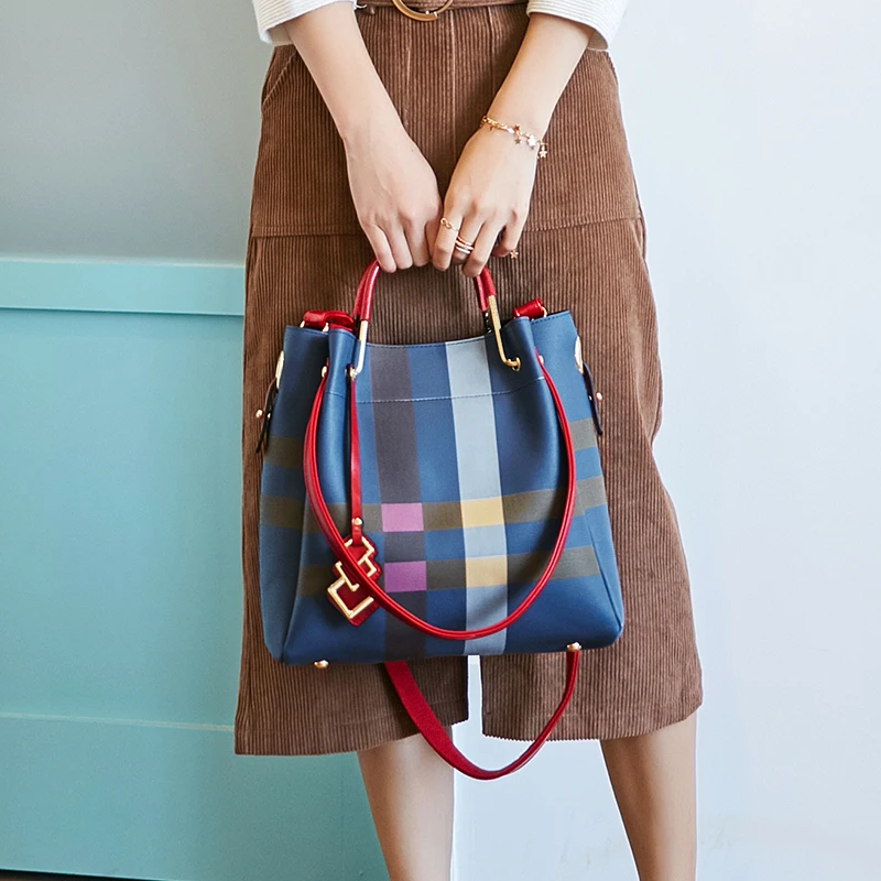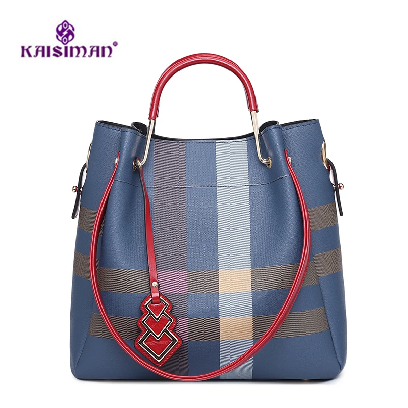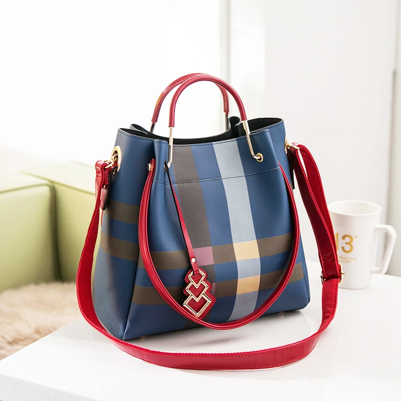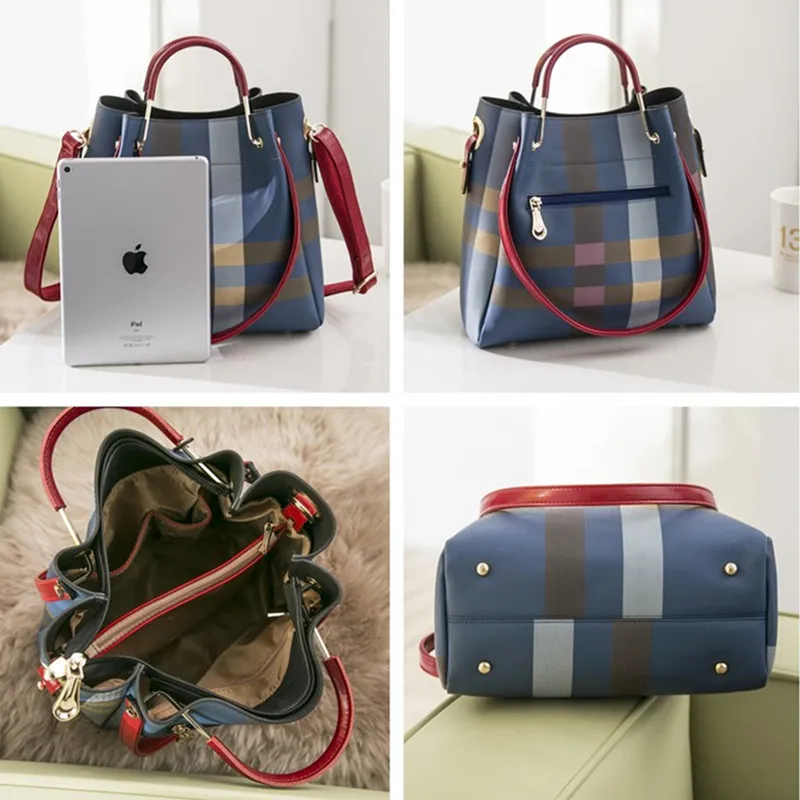 Goede Koop Luxe Merk Vrouwen Tas Leer Vrouwen Emmer Zak Plaid Streep Crossbody Tassen Diamantrooster Handtas Casual Vrouwen Grote Tote Bolsas Goedkoop.