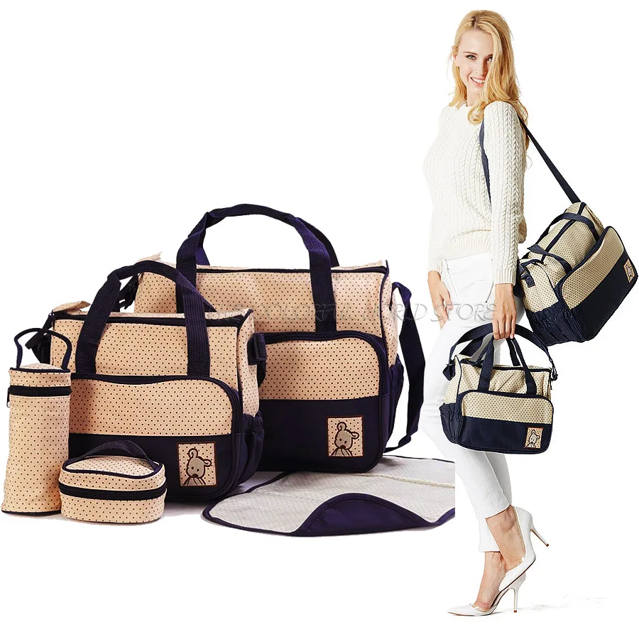 Kopen Goedkoop 5 Stks set Mode Veelkleurige Tote Luierzakken luier tassen Cross body Multifunctionele Mummie Moederschap Baby Bag hoge kwaliteit Prijs