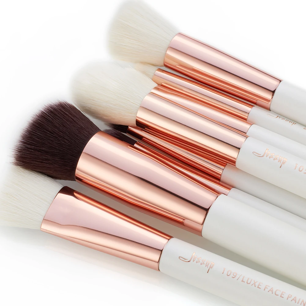 Goede Koop Jessup borstels Parel Wit Rose Gold Professionele Make Up Kwasten Set Make up Brush Gereedschap Foundation Poeder Cosmetische Schoonheid Goedkoop.