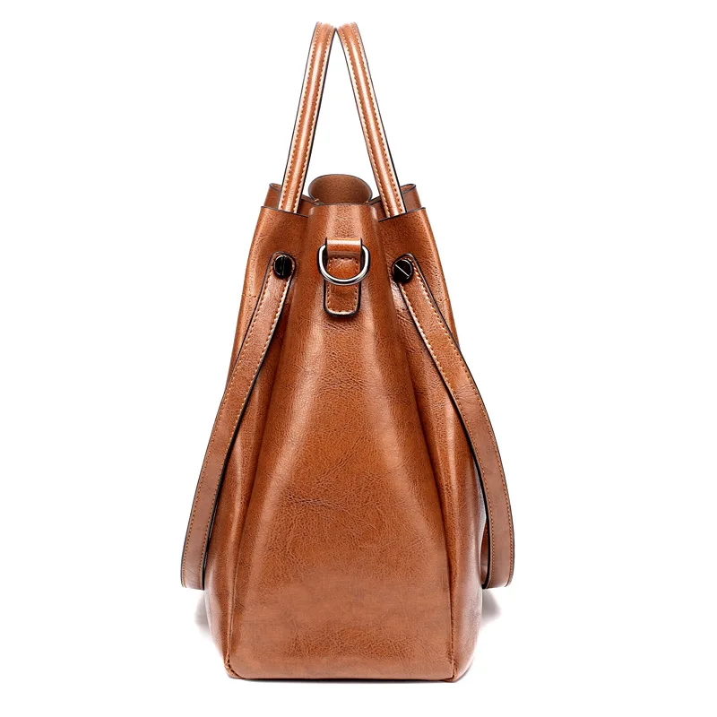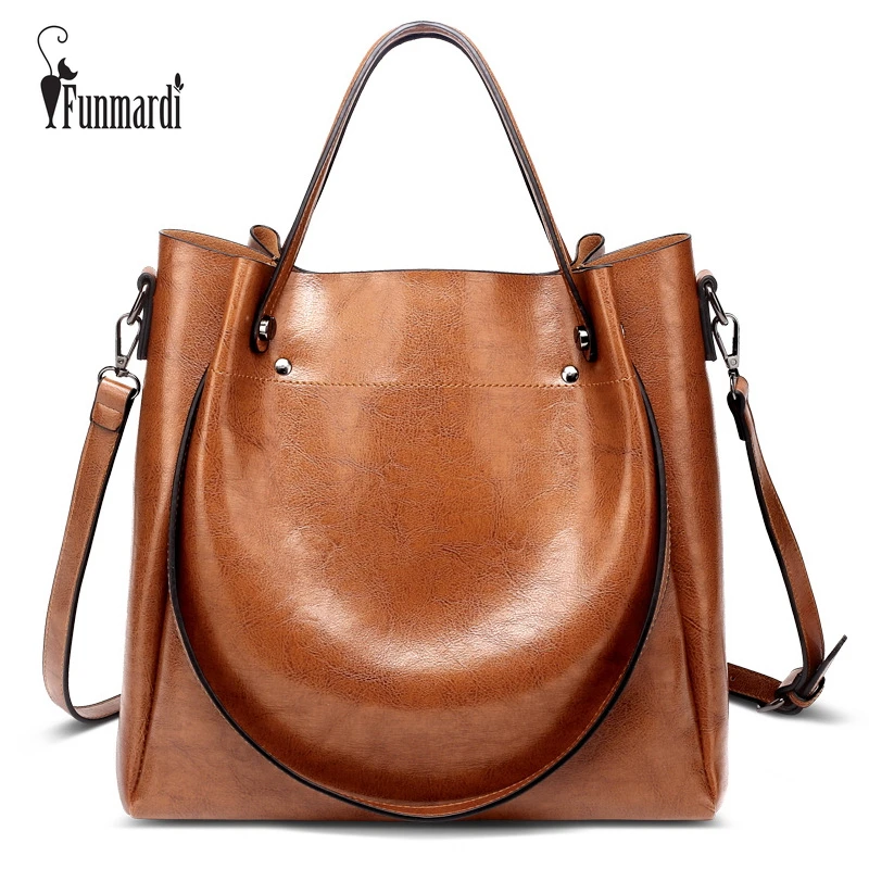 Beste Koop FUNMARDI Nieuwe Merk Ontwerp Wasachtige Lederen Handtas Hoge capaciteit Bakken Tas Luxe PU Lederen Tas Hoge Kwaliteit Vrouwen Tassen WLHB1757 Goedkoop