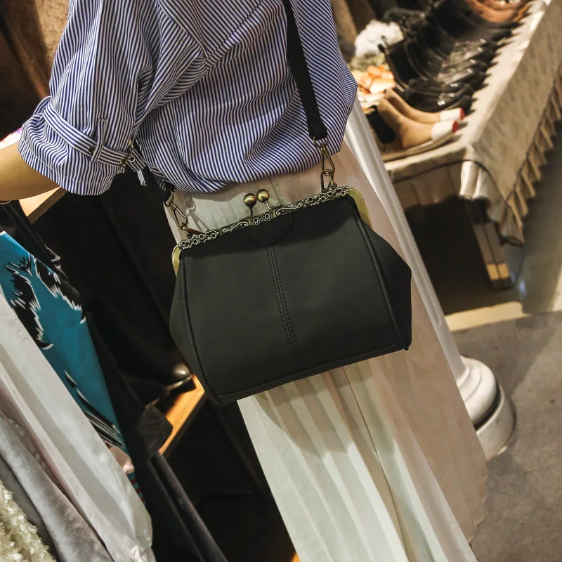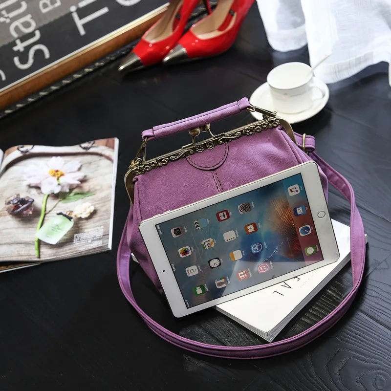 Beste Kopen BARHEE Nieuwe Faux Suede Vintage Vrouwen Handtas Nubuck Koreaanse Mode Vrouwelijke Clip Frame Schoudertas PU Lederen Kleine Tote Bolsas Goedkoop