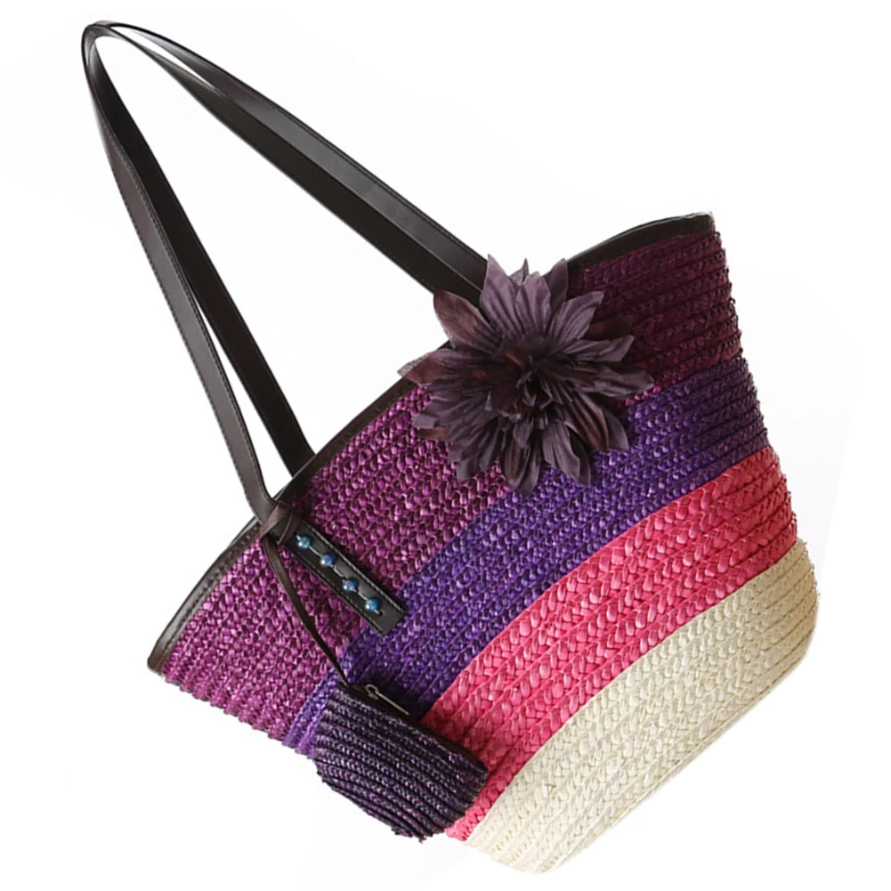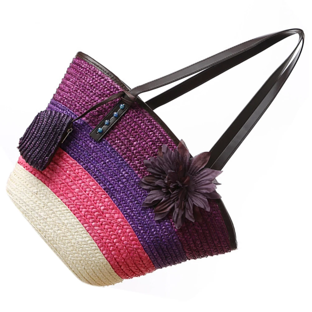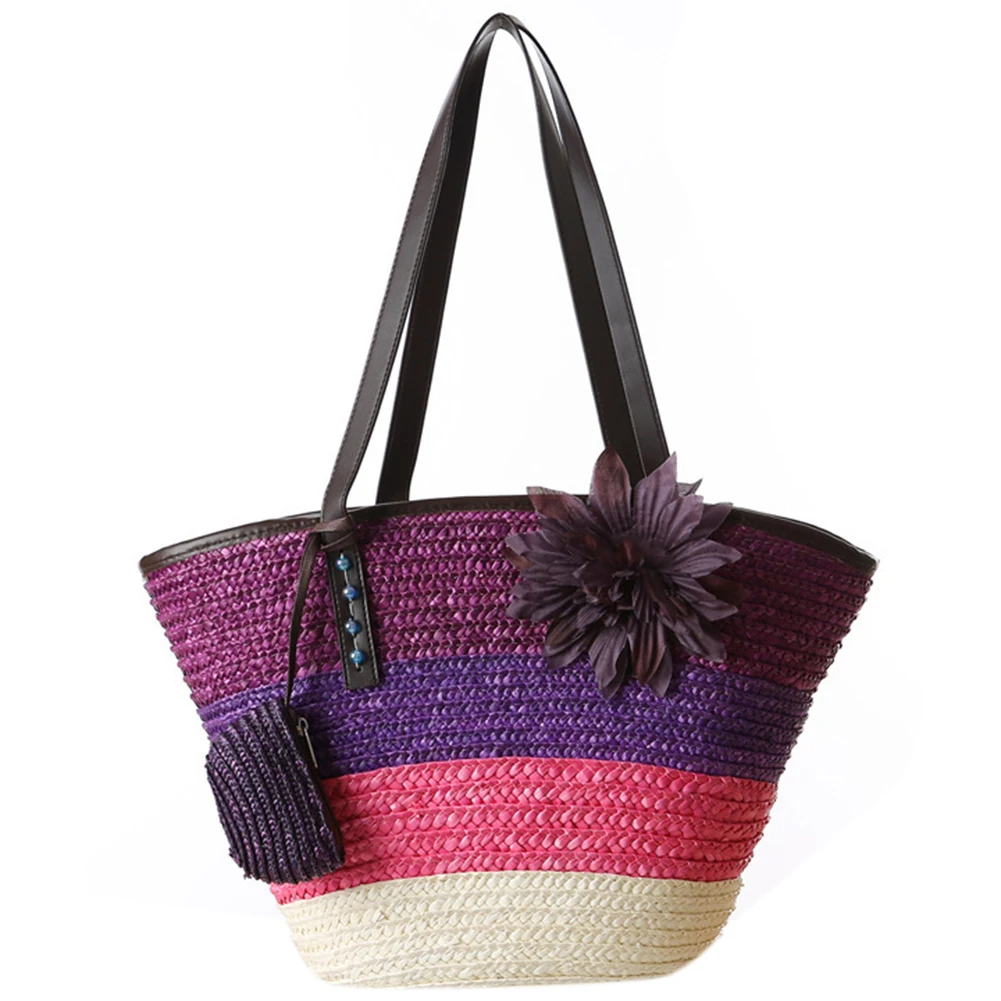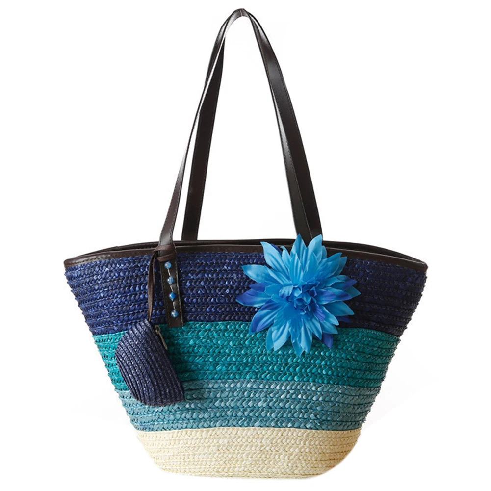 Goede Koop Gebreide strozak Zomer bloem Bohemian fashion handtassen kleur strepen schoudertassen strandtas big tassen Goedkoop.