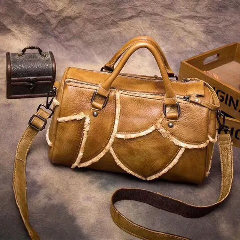 Goede Koop AETOO 2018 nieuwe eerste laag lederen lady retro eenvoudige handleiding wrijven kleur handtas patchwork emmer tas vrouwen Goedkoop