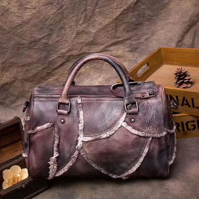 Goede Koop AETOO 2018 nieuwe eerste laag lederen lady retro eenvoudige handleiding wrijven kleur handtas patchwork emmer tas vrouwen Goedkoop.