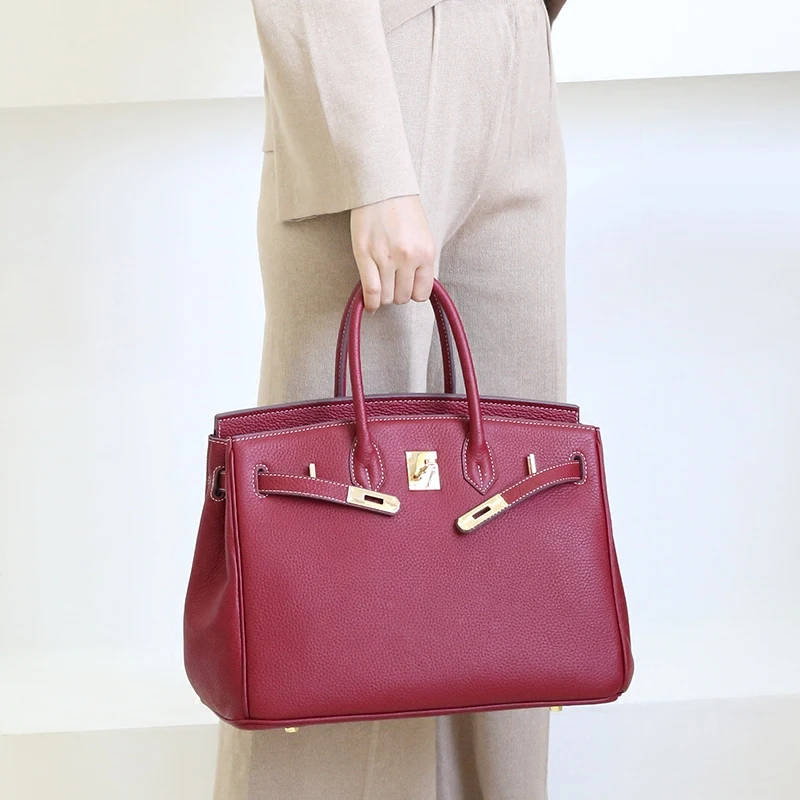 Beste Kopen Geniune Lederen Tas Vrouwelijke Crossbody Tas Eerste Laag Rundleer Handtas Klassieke Mode Eenvoudige Cover Stijl Tas 35 cm Goedkoop