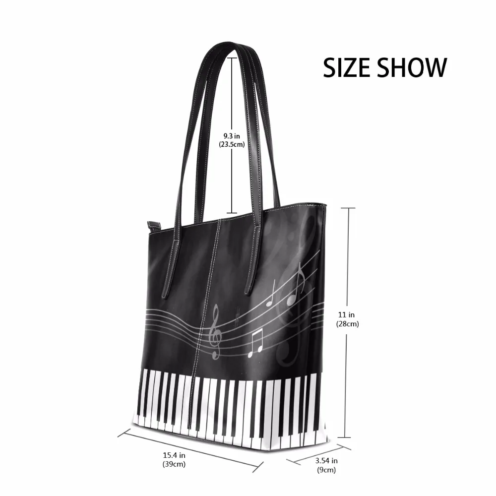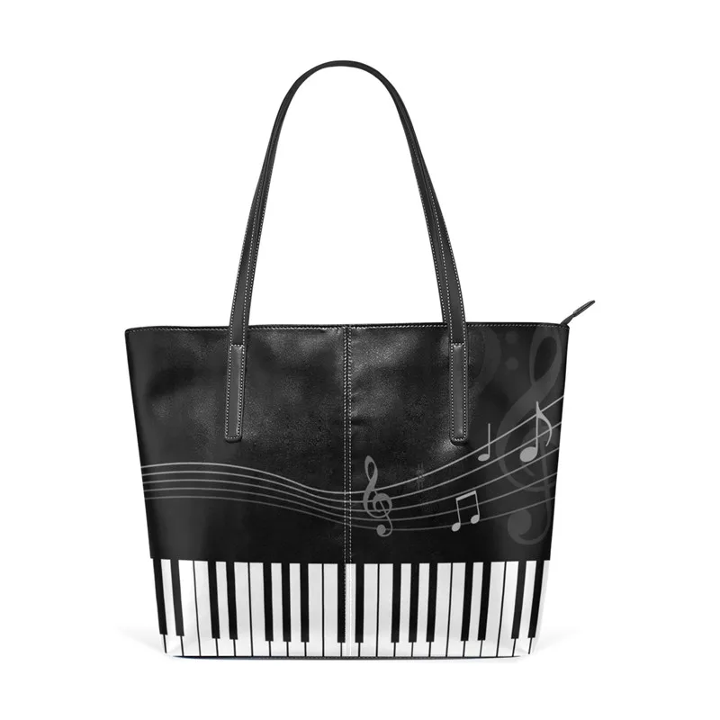 Goede Kopen Vrouwen Schouder Handtas Zwart wit Pianotoetsen vrouwen PU lederen Grote Capaciteit Meisjes Schooltas Dame Werk Tote Schouder tas Goedkoop.