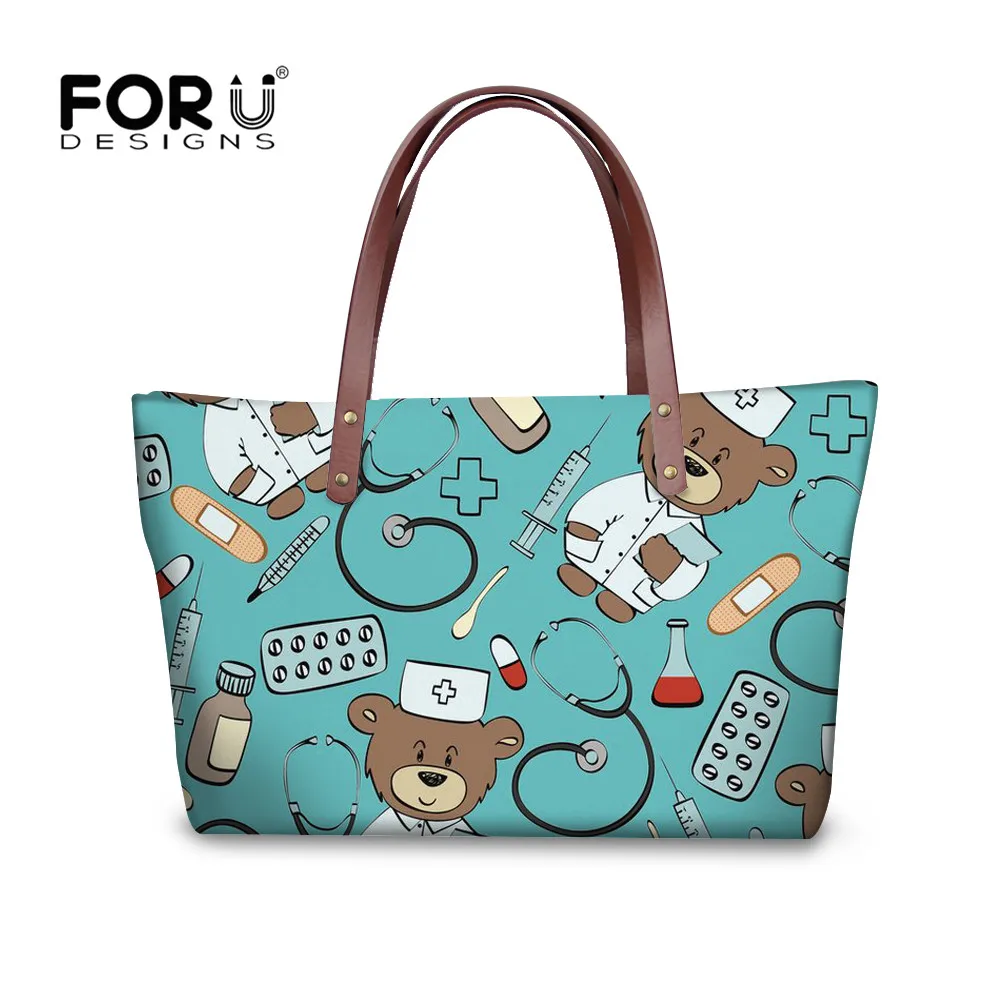 Beste Kopen FORUDESIGNS Schattige Beer Toevallige Handtas Mode Grote Schoudertassen Cartoon Verpleegkundige Priniting Vrouwen Dames Zomer Strand Meisjes Tote Bag Goedkoop.