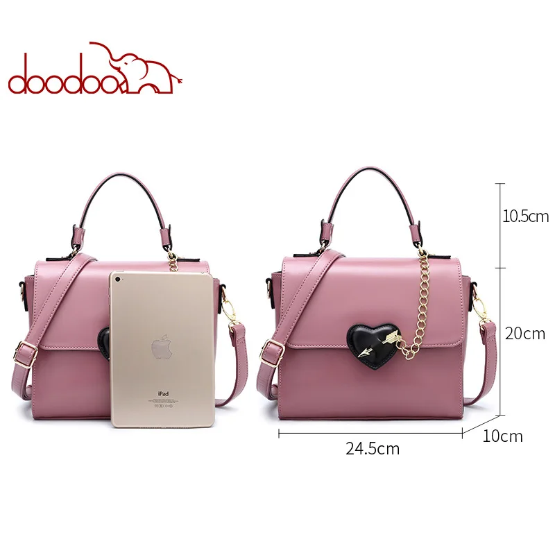 Kopen Goedkoop DOODOO Vrouwen Lederen Handtas Tote Bag Vrouwelijke Schouder Crossbody Tassen Dames Kunstmatige Lederen Top handvat Tas Keten Hart vormige Online