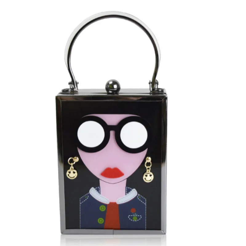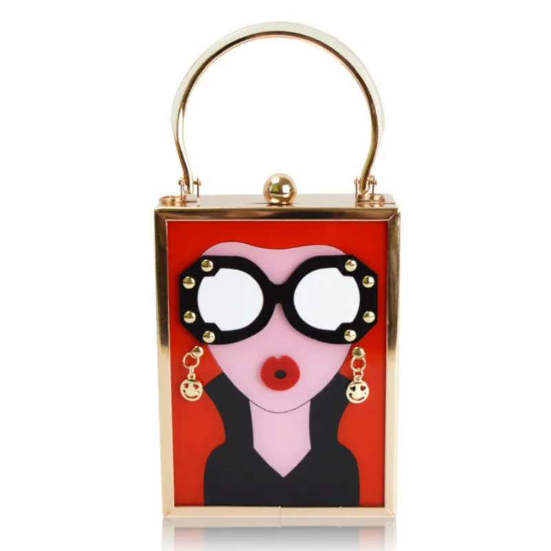 Kopen Goedkoop Acryl Handtassen Retro Bril Lippen Pouch Lafayette Leuke 3D Cartoon Print Avond Clutch Grappige Ketting Schoudertassen Purse Prijs.
