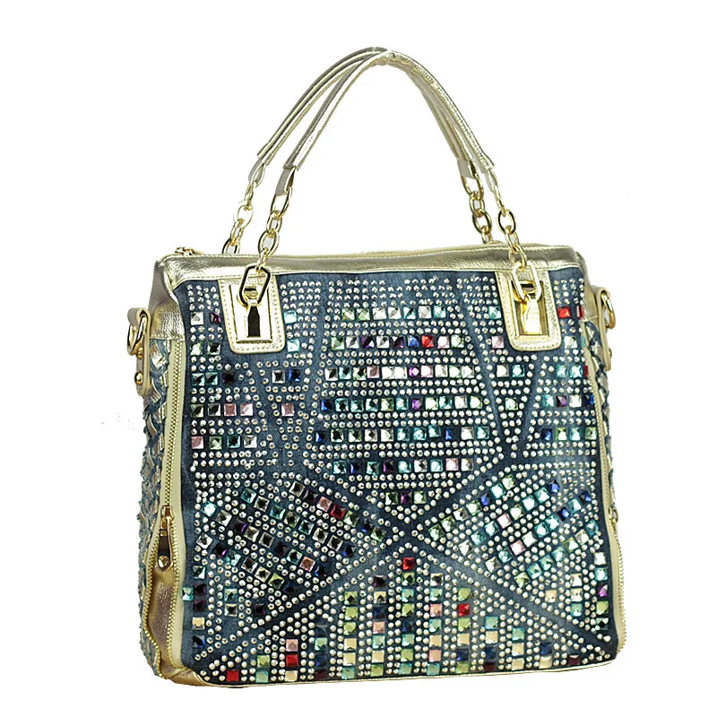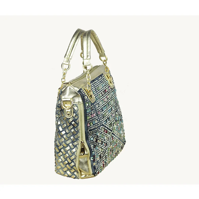 Beste Koop IPinee mode merk luxe tas designer handtassen hoge kwaliteit gold diamante geweven denim tassen verzending Goedkoop.