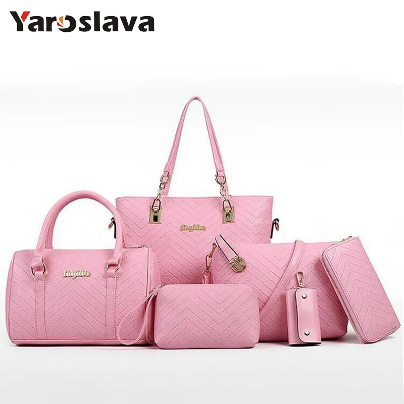Beste Kopen Nieuwe Merk Luxe Lady Handtas 6 stks set Composiet Tassen Mode Set Vrouwen Schoudertas Crossbody Bag Vrouwelijke Portemonnee Clutch Portemonnee LL827 Goedkoop.