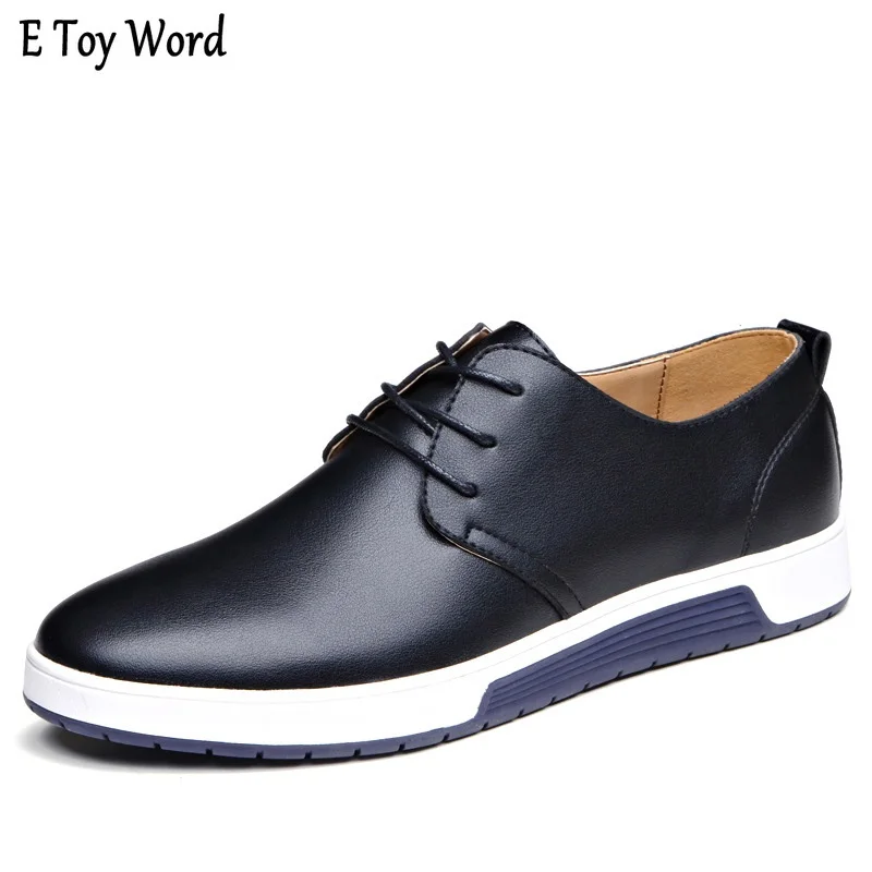 Beste Koop Luxe Merk Mannen Schoenen Casual Leer Mode Trendy Blauw Bruin Platte Schoenen voor Mannen Drop Shipping Big Size 38 48 Goedkoop.