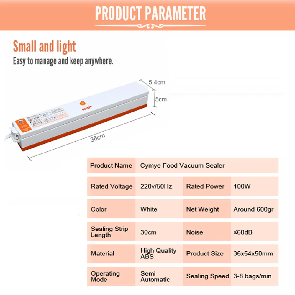 Beste Koop CYMYE Eten saver Vacuum Sealer Machine + Plastic rolls Goedkoop.