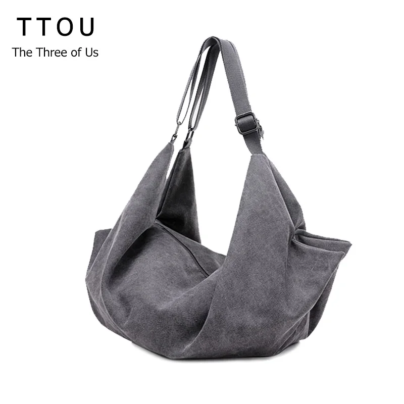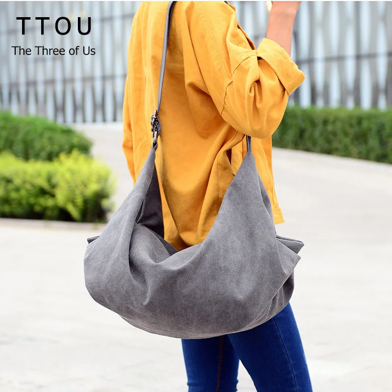 Kopen Goedkoop TTOU Vrouwen Canvas schoudertas Toevallige Grote Capaciteit Hobos Bag Vrouwelijke Bakken Bolsas Trapeze Ruches Solid Crossbody Tas Dames Prijs.