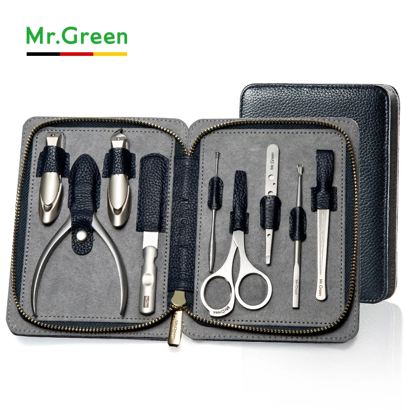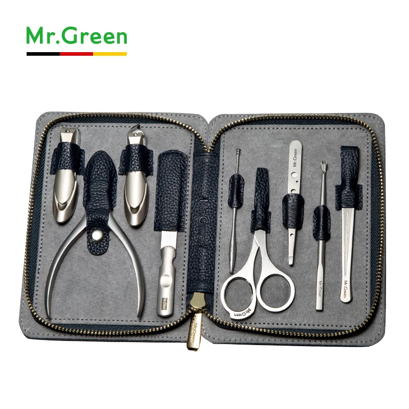 Goede Koop MR. GROENE Hoge kwaliteit Rvs grooming kit 9 in 1 nagelknipper set Koeienhuid nail Manicure Gereedschap Nail Care Set Goedkoop.