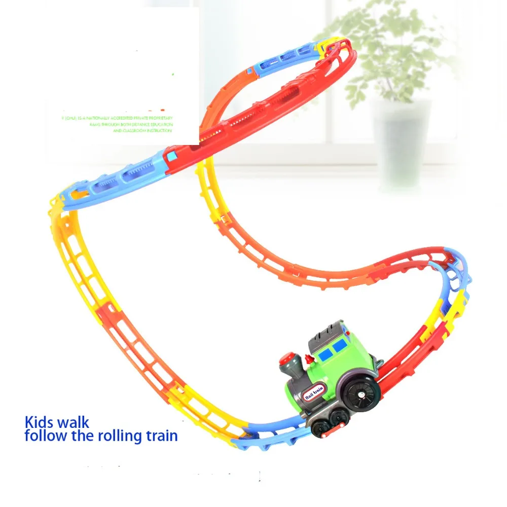 Beste Koop Innovativ muziek tumble rolling trein DIY elektrische ABS knipperlicht muziek creatieve oefening rail auto speelgoed beste cadeau voor kinderen Goedkoop.