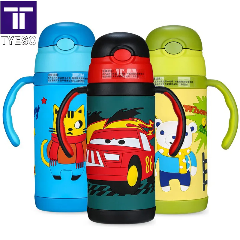 Goede Kopen 3D cartoon Thermos Cup Kids Thermo Mok zachte siliconen Stro Ge iuml;soleerde Water Drinken Fles kart kerstcadeau riem handvat Tumbler Goedkoop