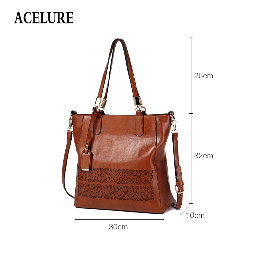 Beste Koop ACELURE Merk vrouwen Schoudertas Vrouwelijke PU Lederen Handtas Vrouwen Tassen Designer Hoge Kwaliteit Hollow Out Grote Capaciteit Tote tas Goedkoop.