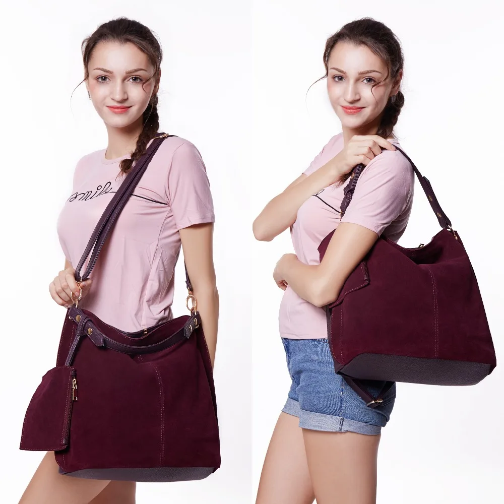 Goede Koop Nico Louise Vrouwen Real Split Su egrave;de Hobo Bag Ontwerp Vrouwelijke Leisure Grote Schoudertassen Met Portemonnee Reizen Toevallige Handtas Goedkoop