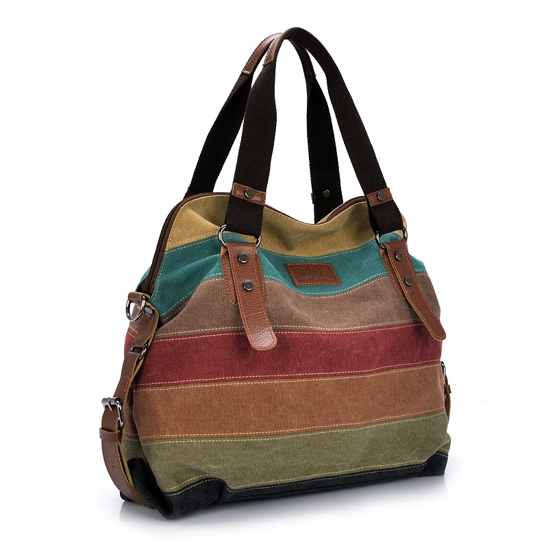 Goede Koop 2017 Vrouwen Canvas Draagtas Patchwork Dame Schoudertassen Mode Gestreepte Meisjes Handtassen Sac A Main Vrouwelijke De Marque Bolsos mujer Goedkoop