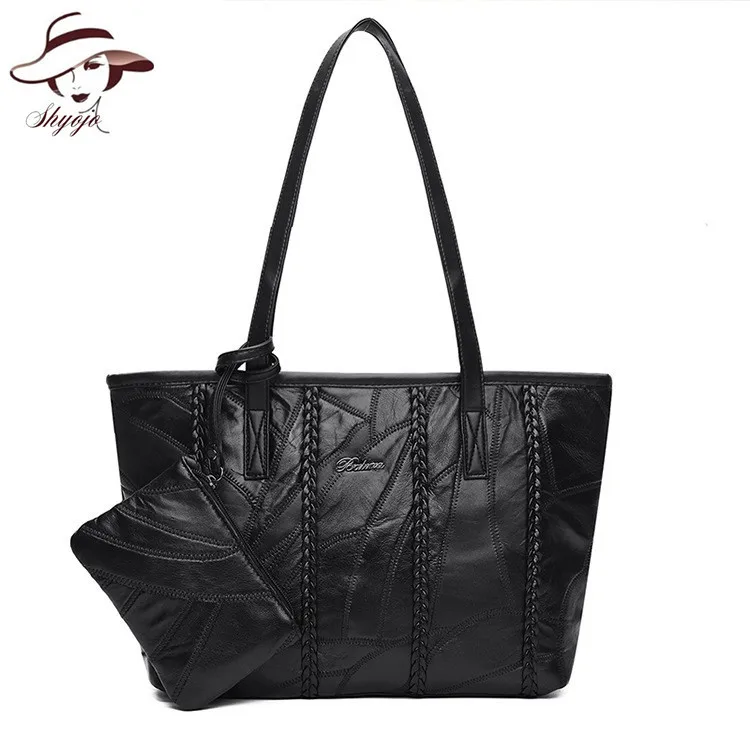 Beste Kopen 2018 Luxe Lederen Handtassen Vrouwen Tassen Designer Hoge Kwaliteit Zwart Solid Messenger Tote Voor Dames 2 Sets Schoudertas Goedkoop.