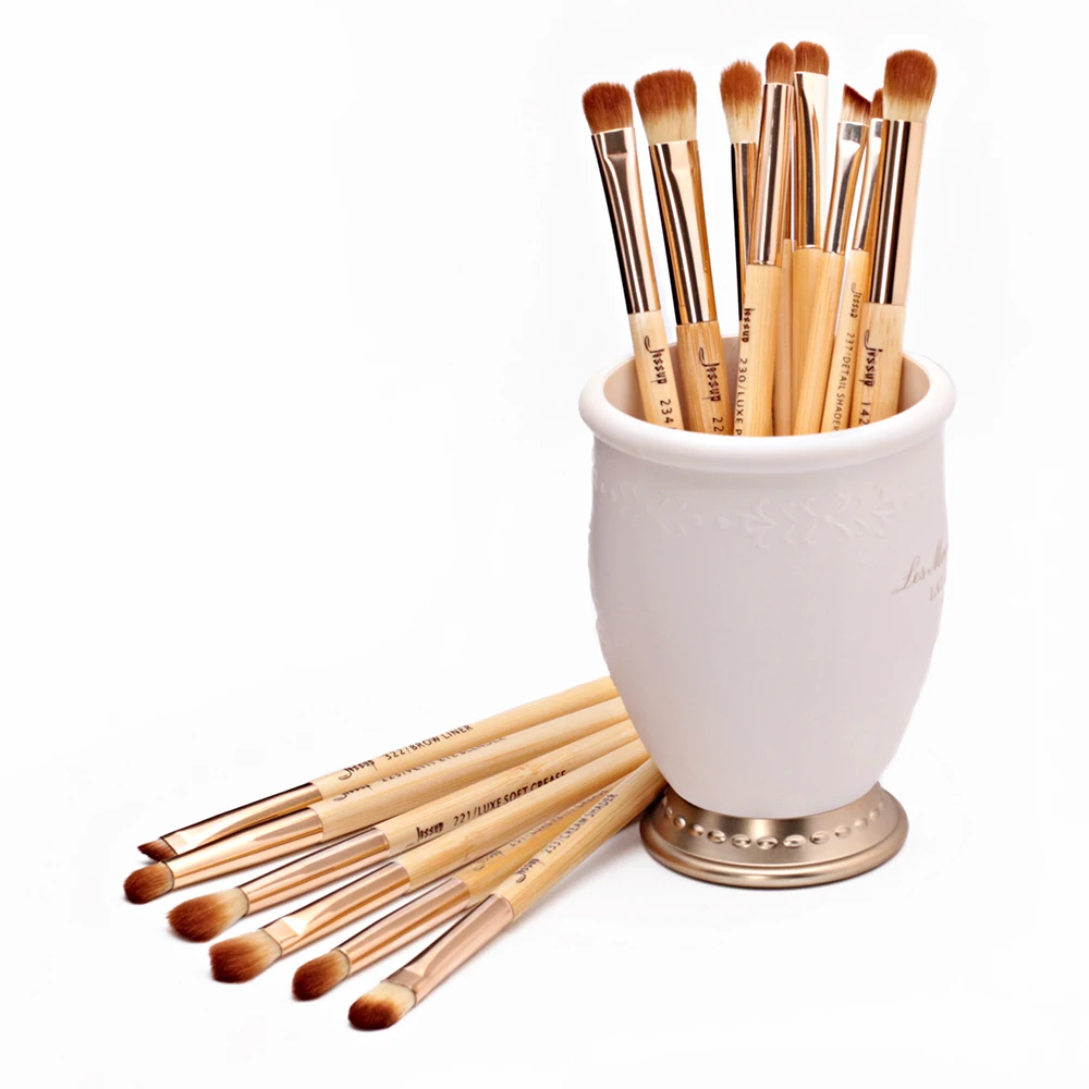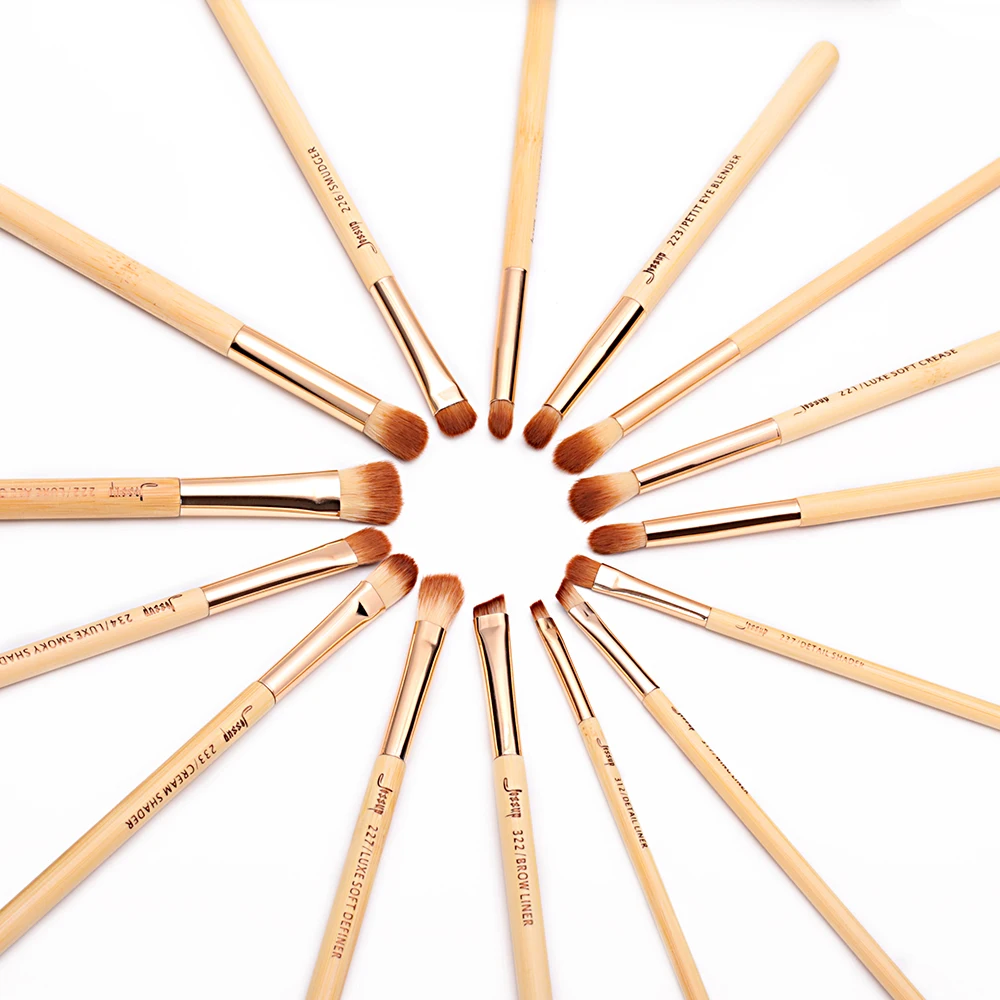 Goede Koop Jessup Merk 15 stks Schoonheid Bamboe Professionele Make Up Kwasten Set Make up Borstel Gereedschap kit Eye Shader Liner Vouw Definer buffer Goedkoop.