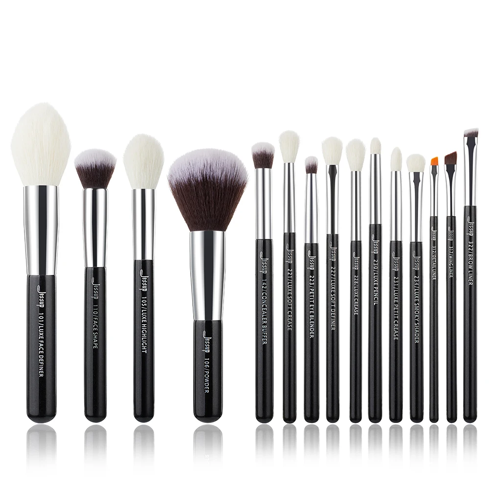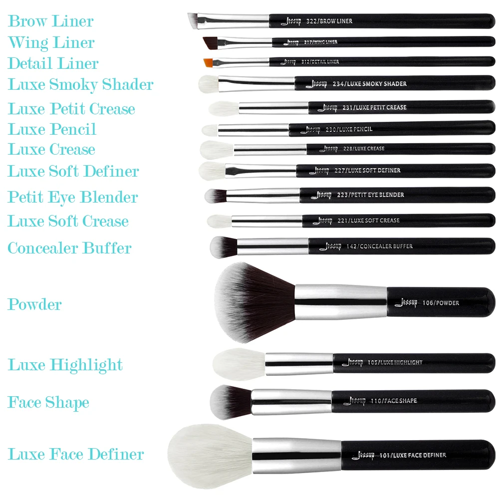 Kopen Goedkoop Jessup Borstels 15 stks Zwart Zilver Professionele Make Up Kwasten Set Make Up Borstel Gereedschap kit Foundation Poeder T182 Online