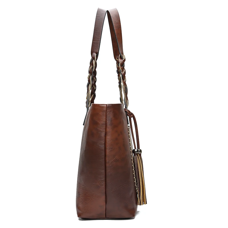 Beste Koop Pahajim Vrouwen PU Lederen Tas Kwastje Handtassen Vrouwen Grote Bakken tassen Luxe Designer Hoge Kwaliteit sac een Vintage Schouder tas Goedkoop
