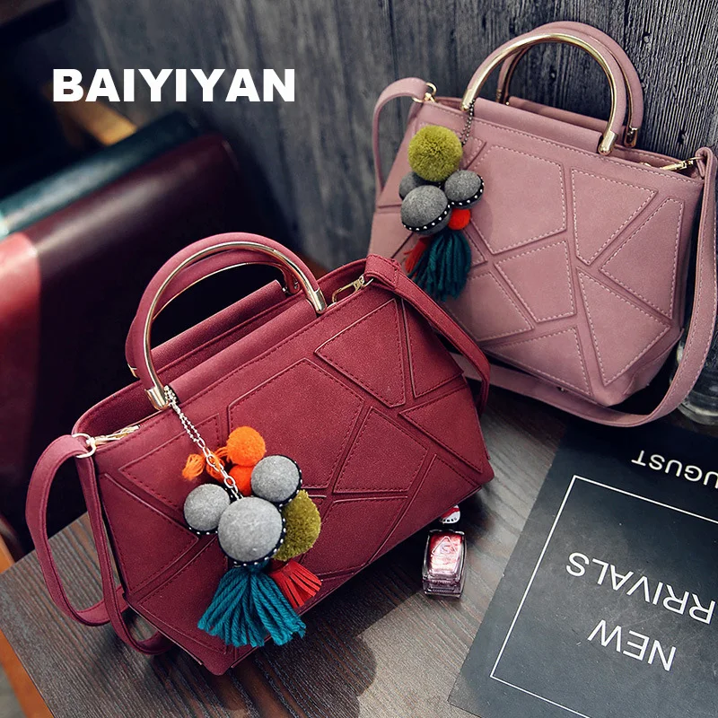 Kopen Goedkoop Nieuwe Winter Stitch Tote tas vrouwen handtas Dames Mode messenger bag schoudertas met Bont Bal Prijs.