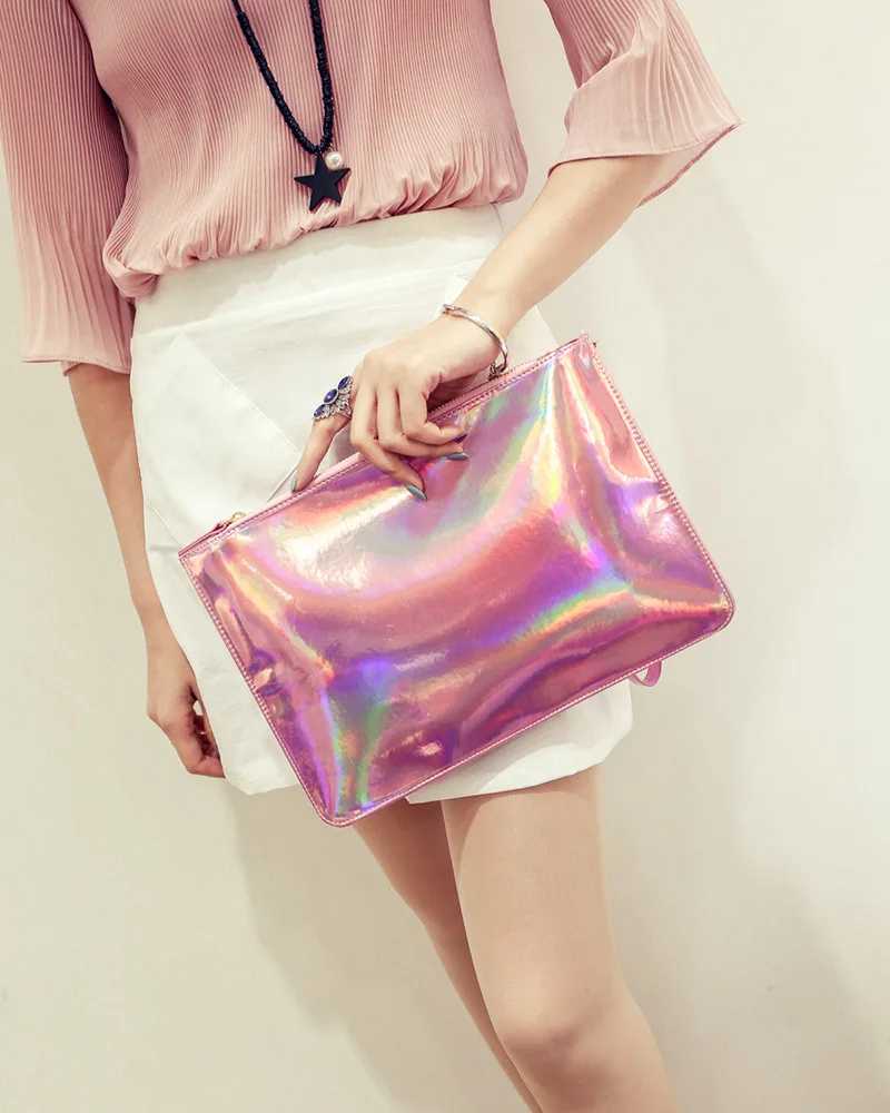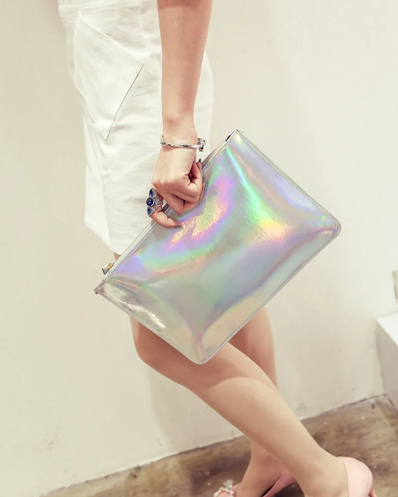Beste Kopen ZHINA 2018 Vrouwen Mode Laser Messenger Handtas Tassen Koreaanse Envelop Clutch Bag Meisjes Party Polsbandjes Casual Totes Goedkoop.
