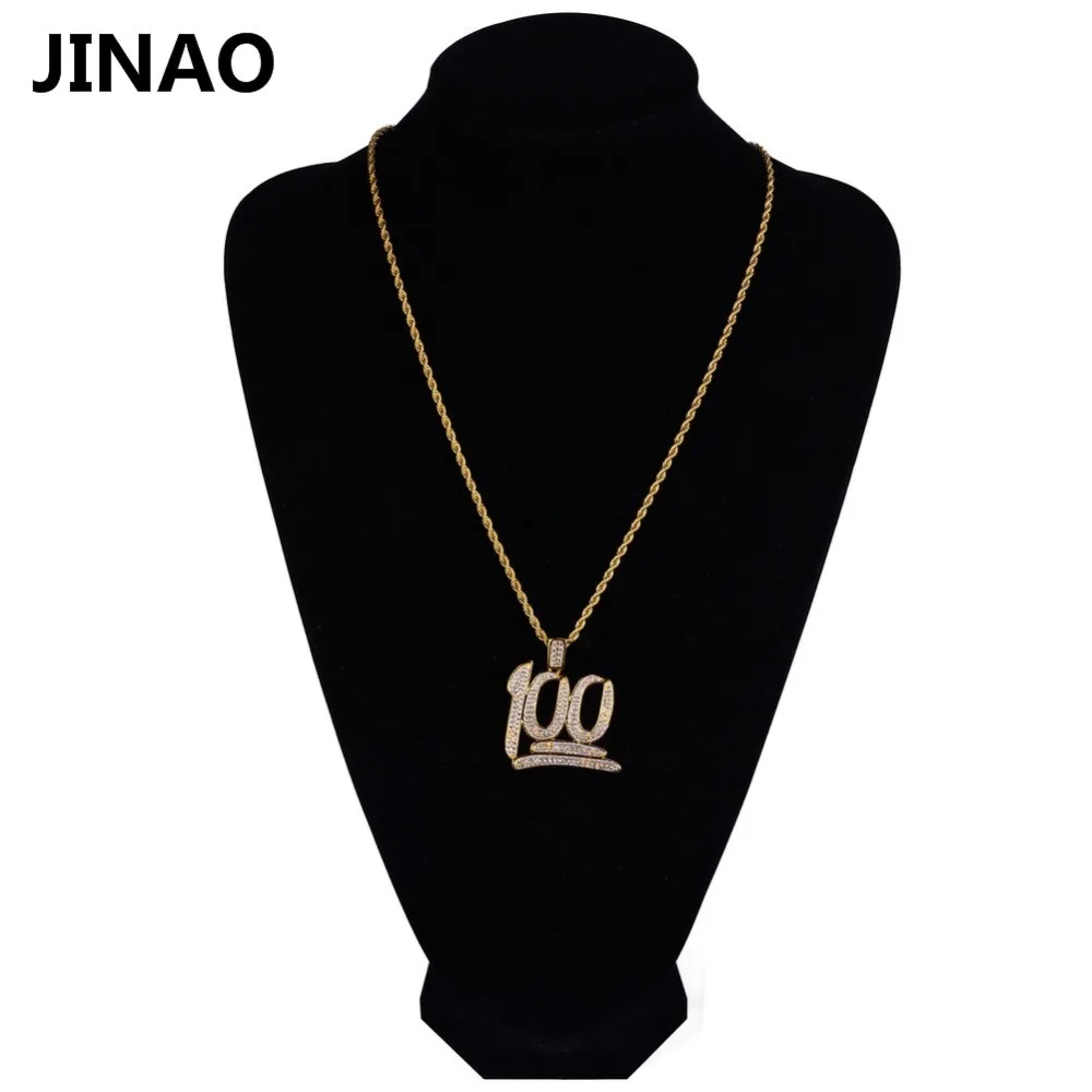 Goede Kopen JINAO Goud Kleur Plated 100 Punten Micro Pave Kubieke Zirkoon Kettingen en Hanger 24 inch Ketting Lengte Hip Hop Rock ketting Sieraden Goedkoop.